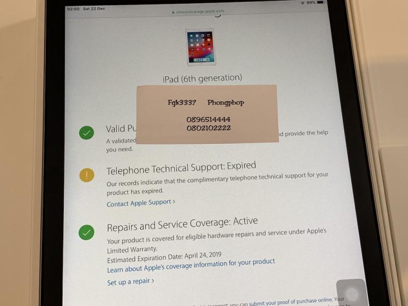 ขาย IPad 2018 Gen6 32GB Wifi ศูนย์ไทย ประกันเหลือ 5 เดือน สภาพสวยมาก แท้ ครบยกกล่อง เพียง 8,900 บาท