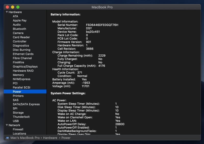 - Battery cycle count 371
