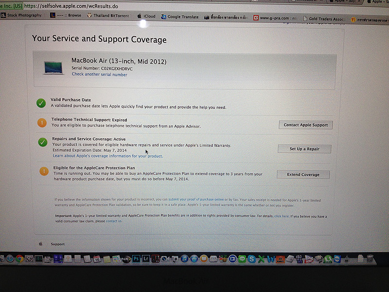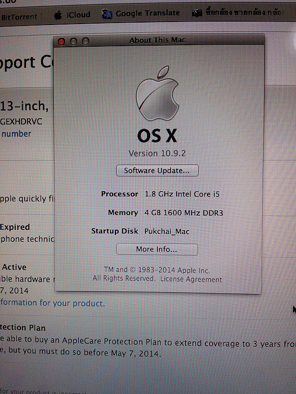 ขาย Macbook Air (13-inch, Mid 2012) สภาพและประกันตามรูปครับ ราคามือ1ในเวบอยู่34900 ขอขายที่23900ครับ
