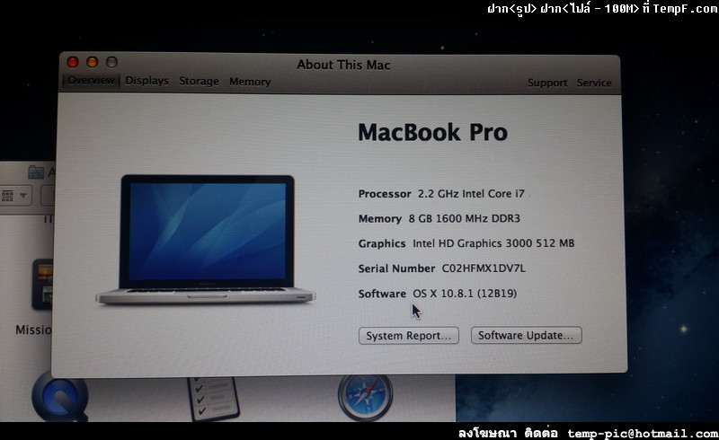 สภาพ : เครื่อง Corei7 2.2 Ram 8G HDD 500G Batt 31 Cycle