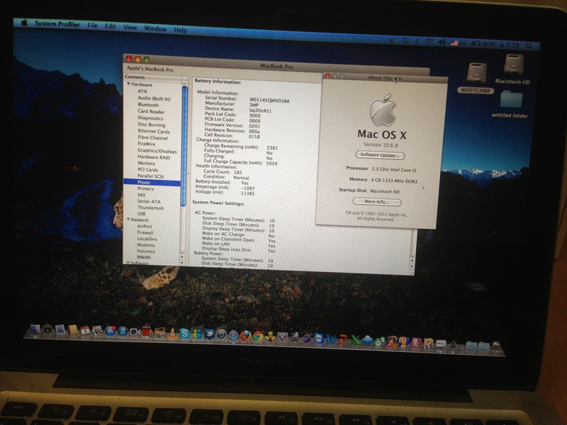 การไช้งานปกติดี อุปกรครบยกกล่อง สเป๊คคร่าวๆนะครับ Macbook pro 13" 2.3 i5 R4gb HDD320gb