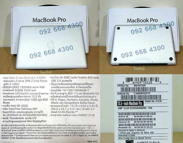 ขาย Macbook Pro 13-inch Mid 2012 มีประกันถึง 8 May 2015 สภาพ 98% ใหม่มากๆ เครื่องศูนย์ไทย กล่องอุปกรณ์ครบ