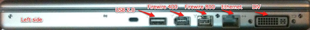 One Fire wire 400, One Fire wire 800 and two USB 2.0 ports