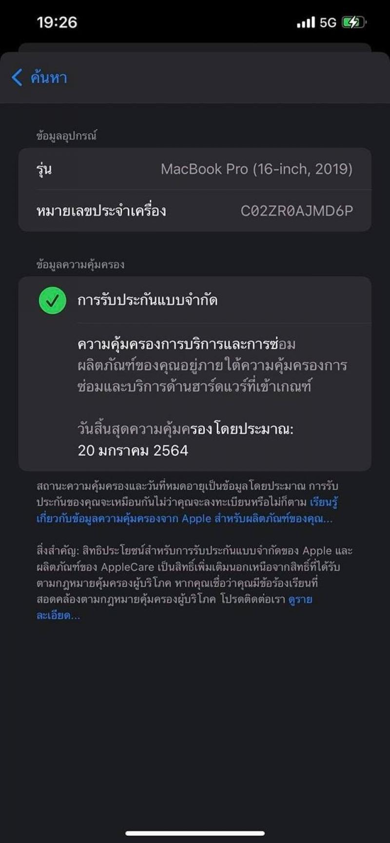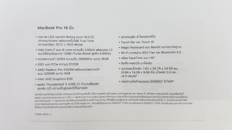 Macbook Pro 16 นิ้ว Touchbar 2019 สภาพใหม่เอี่ยม 99.99%