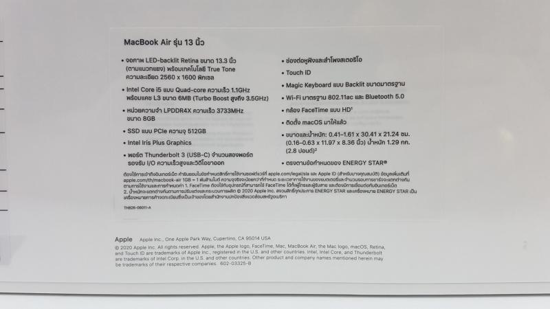 MacBook Air ( Retina, 13 นิ้ว 2020 ) ศูนย์ไทย ของใหม่มือ 1
