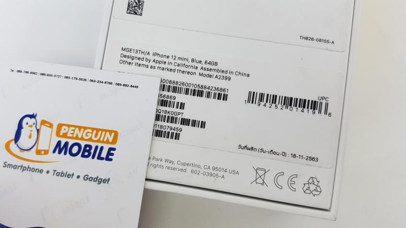 iPhone 12 mini สี Blue 64 GB ศูนย์ไทย สภาพใหม่เอี่ยม 99.99 % ติดกระจกกันรอยจอเรียบร้อยครับ ประกันถึง 27/11/2021 เครื่อง + กล่อง ไม่มีอุปกรณ์อื่น เพียง 18,990 บาท ครับ