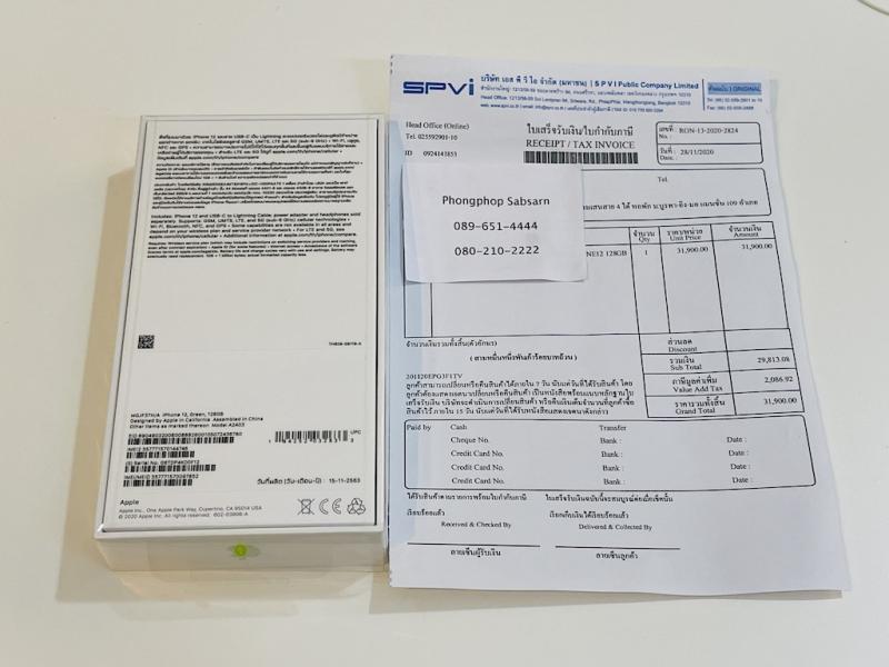 iPhone 12. 128 ของใหม่ ศูนย์ไทย 100% ประกันศูนย์ 1 ปีเต็ม 28990 บาท