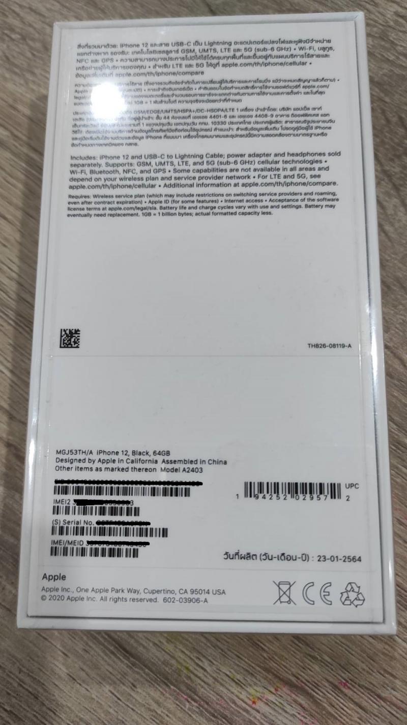 Iphone 12 64GB Black ศูนย์ไทย ของใหม่ ยังไม่แกะซีล 25,000.-
