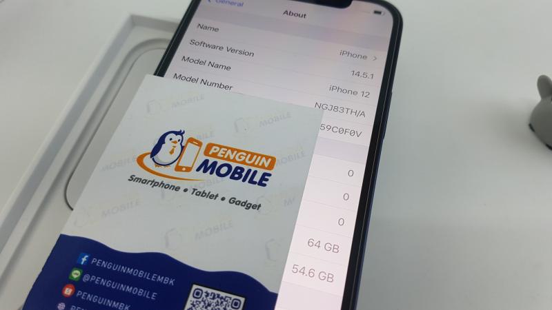 iPhone 12 สีบลู ความจุ 64GB เครื่องศูนย์ไทย ประกันศูนย์ถึง 30/11/21 สภาพใหม่เอี่ยม 99.99%