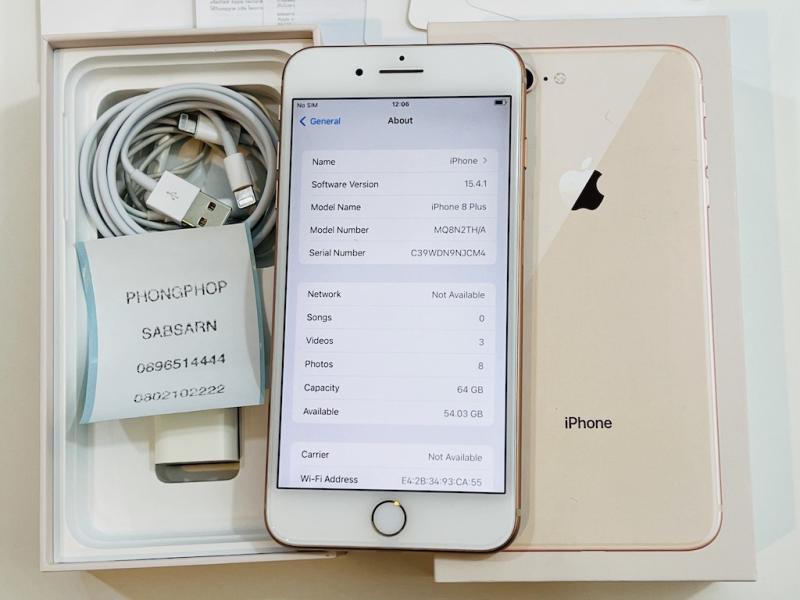 ขาย iPhone 8 Plus 64GB สี ทอง สภาพใหม่ ศูนย์ไทย ครบยกกล่อง 8900 บาท