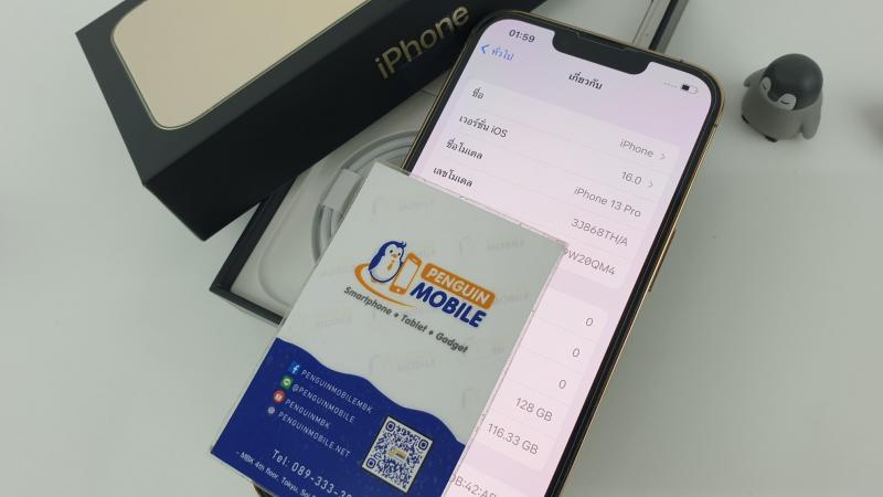 iPhone 13 Pro 128 GB สี Gold เครื่อง Demo ศูนย์ไทย ใช้งานปกติทุกอย่าง อัพเดท iOS 16 เรียบร้อย สภาพใหม่มาก