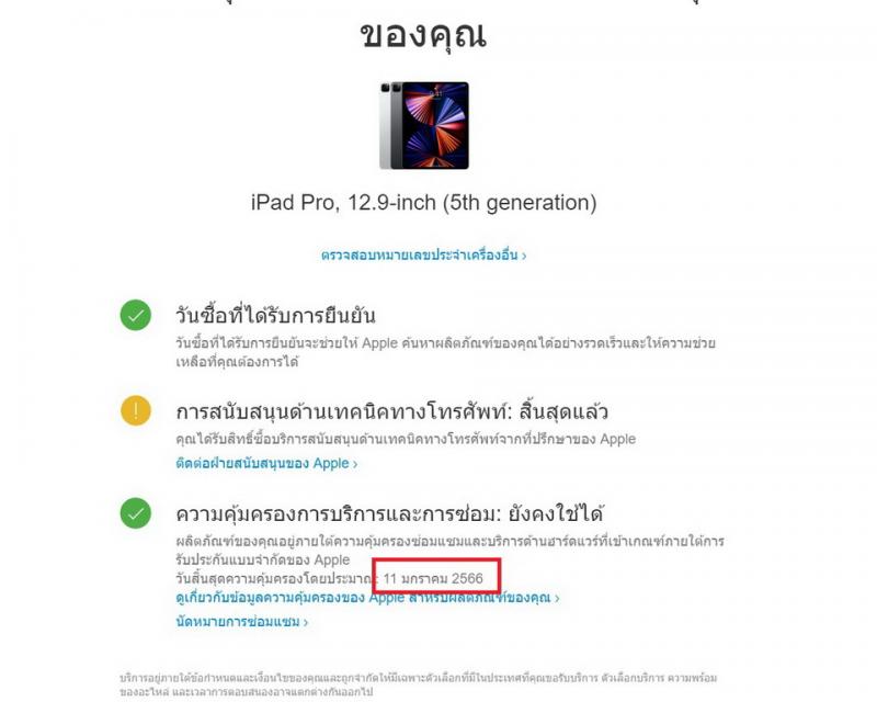 – Warranty : ประกันศูนย์ Apple ถึงวันที่ 11-01-2023 ครับ
