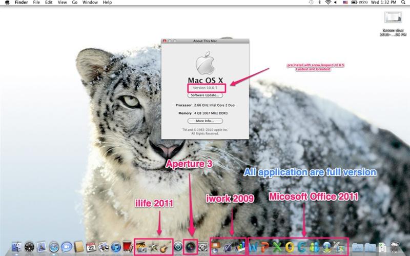 Memory 4GB (two 2GB SO-DIMMs) of 1066MHz DDR3 SDRAM; supports up to 8GB