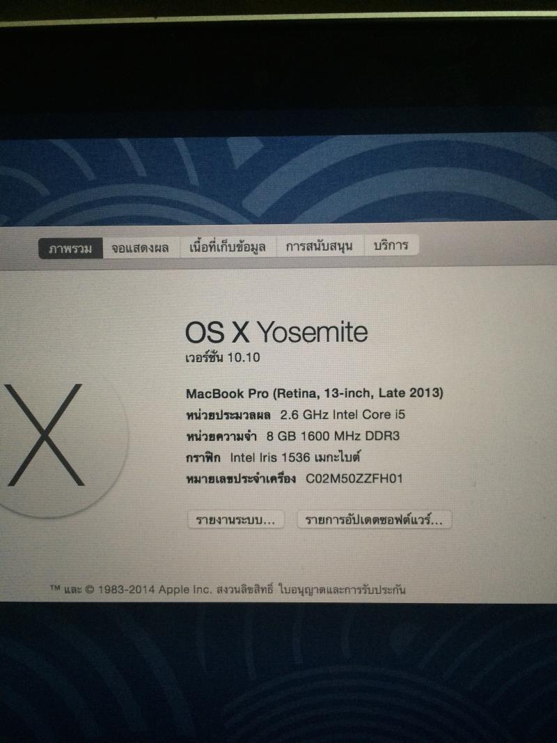 ขาย MacbookPro Retina 13\" Late2013 2.6 GHz intel Corei5 SSD512gb Ram8GB ตัว TOP