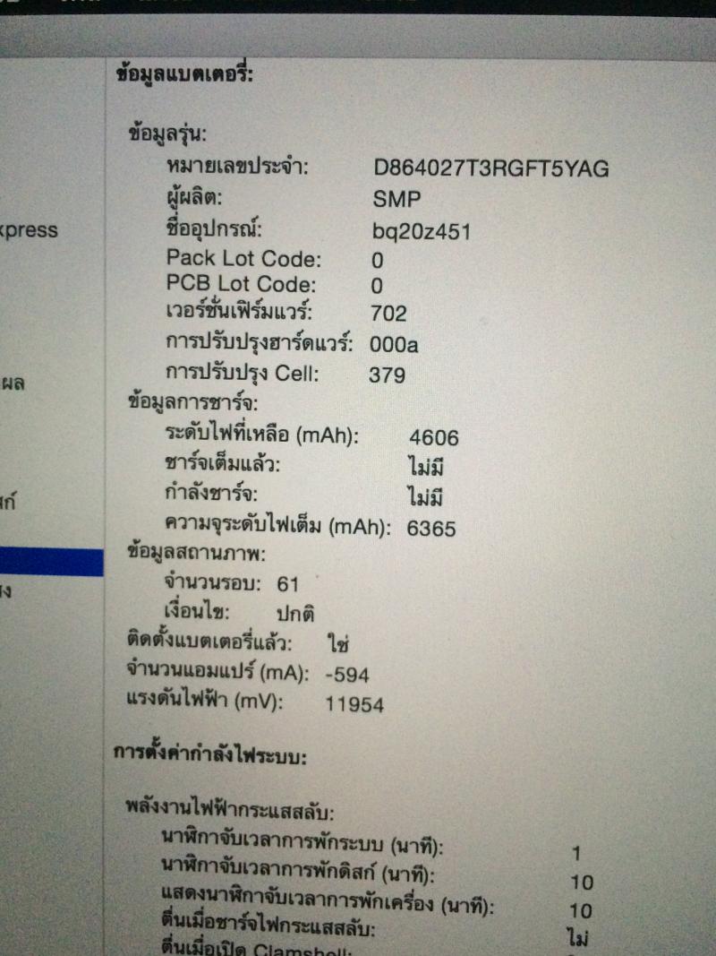 Battery : Cycle Count : 61 / Full Charge Capacity : 6365