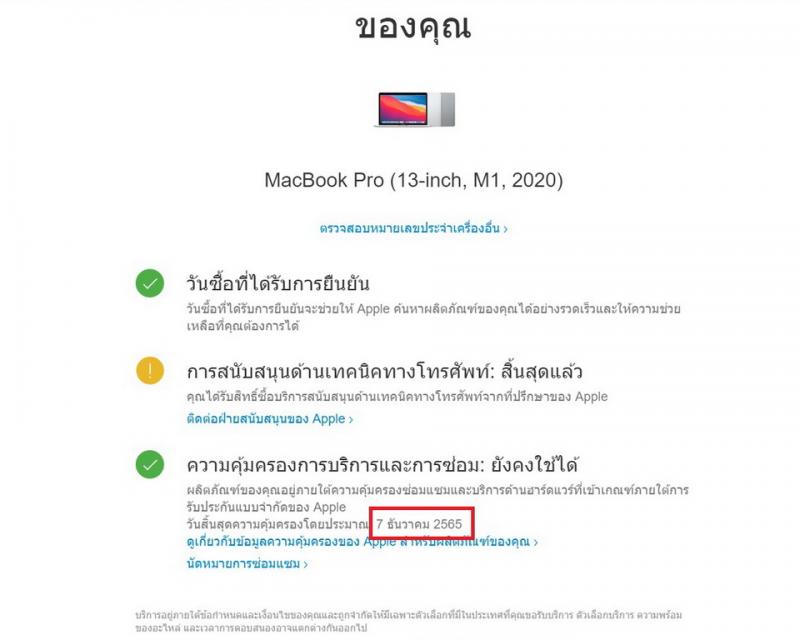 – Warranty : ประกัน Apple ถึงวันที่ 07-12-2022 ครับ