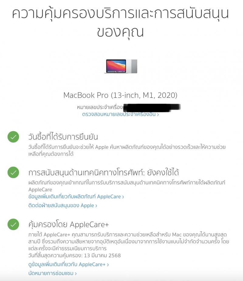 มี Apple Care+ เหลือถึงเดือนมีนาคม 2025