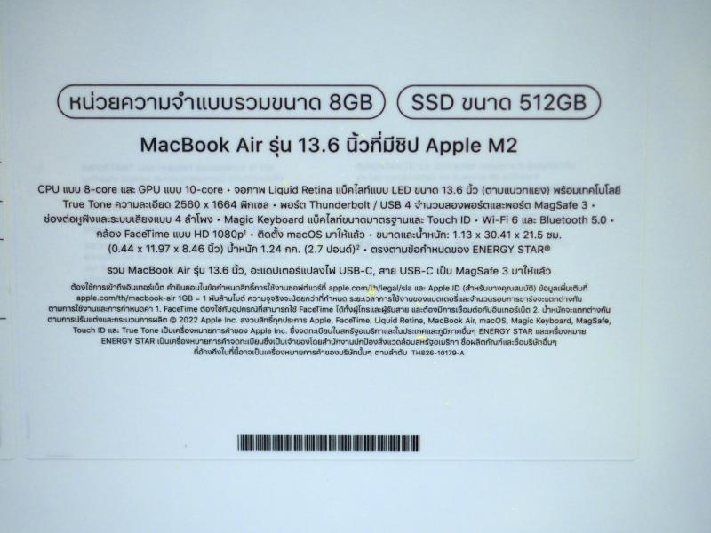 ขาย MacBook Air M2 SSD 512GB 2022 NEW!! รหัสสินค้า : 0702