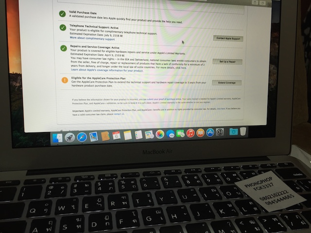 ขาย macbook air 11" 2015 อายุ2เดือน อุปกรณ์ครบยกกล่อง 26900 บาท