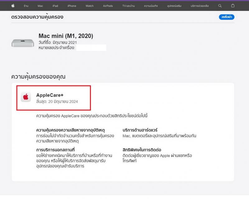 – Warranty : ประกันศูนย์ Apple Care+ ถึงวันที่ 20-06-2024 ครับ