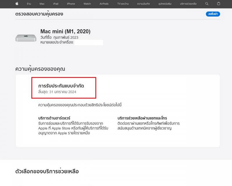 – Warranty : ประกันศูนย์ Apple ถึงวันที่ 31-01-2024 ครับ