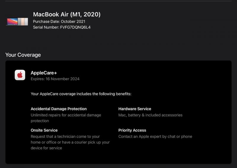 MacBook Air M1 2020 มี AppleCare+ รหัสสินค้า : 0301