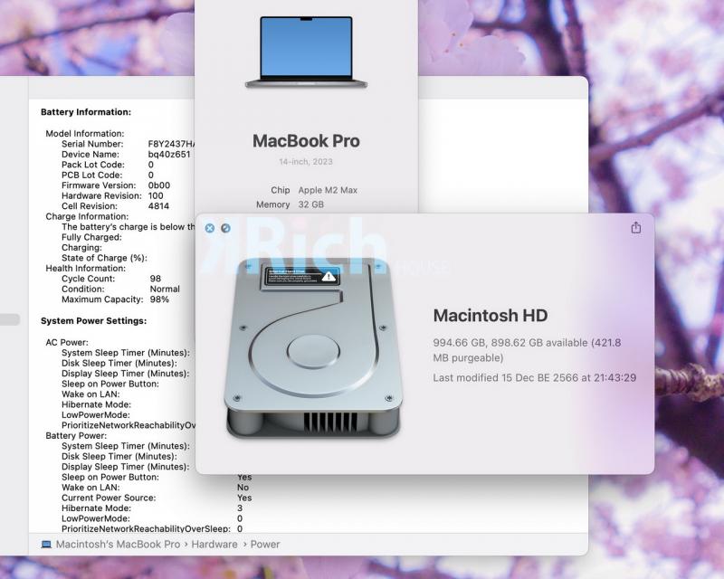 – Battery : Normal / Cycle Count : 98 / Maximum Capacity : 98%