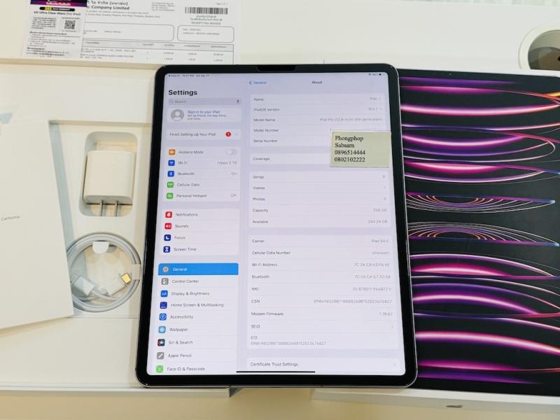 iPad Pro 12.9 Gen 6 M2 2022 256GB Wifi + Cellular สภาพเหมือนใหม่ ประกันศูนย์ไทยถึง เดือน 9 40500 บาท