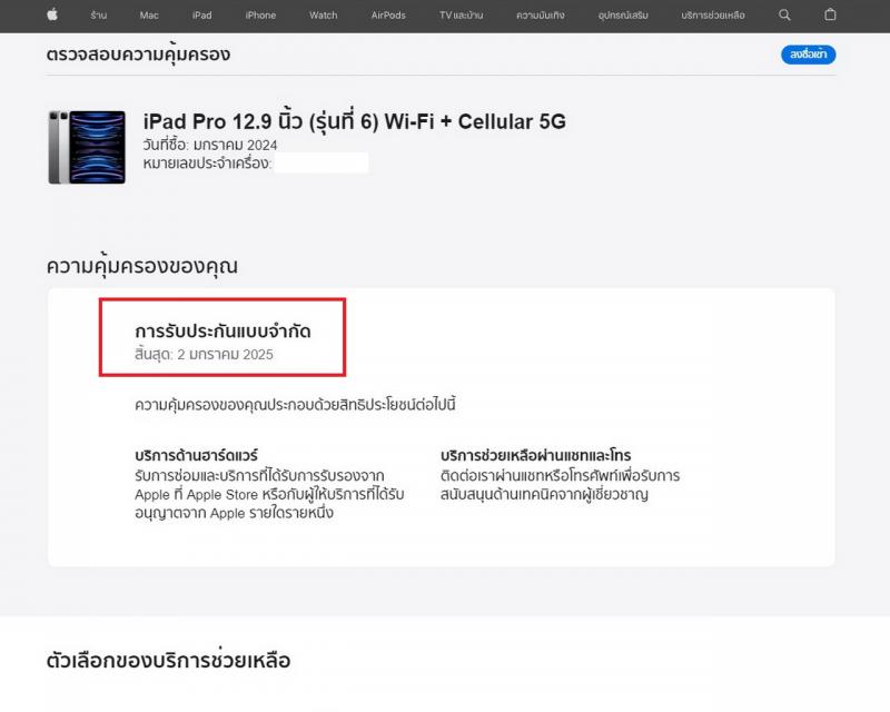 – Warranty : ประกันศูนย์ Apple ถึงวันที่ 02-01-2025 ครับ