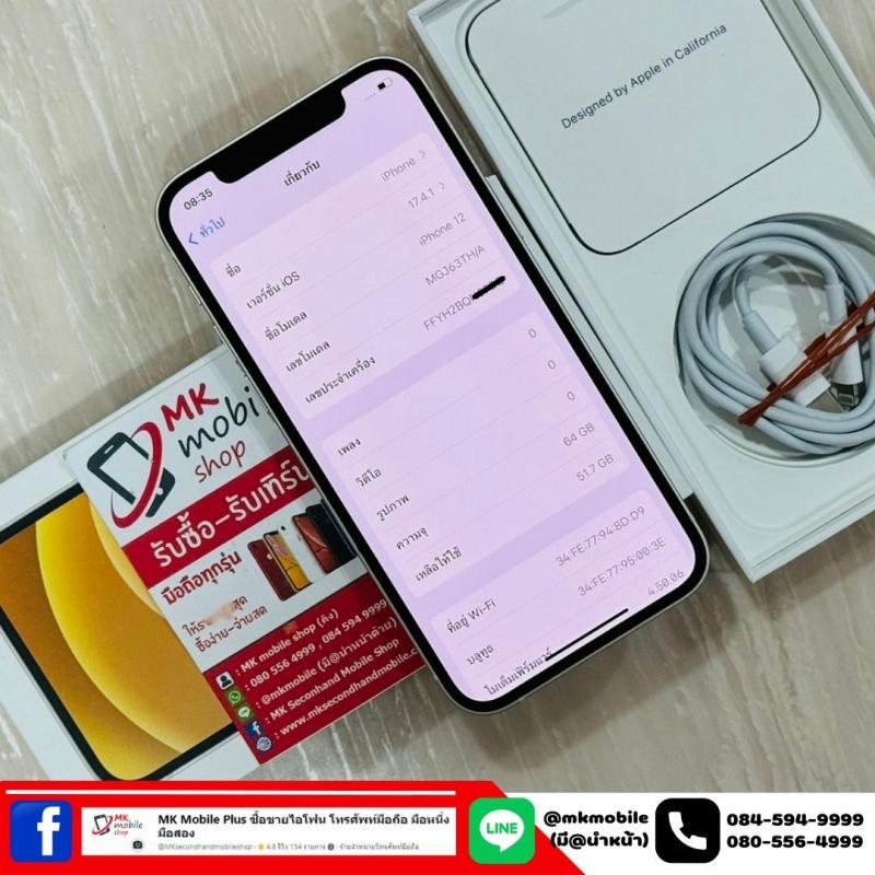 >>> Iphone 12 64 GB สีขาว ศูนย์ไทย สภาพงาม เบต้าแบต 85% อุปกรณ์ครบกล่อง เพียง 13990