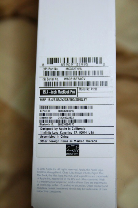 อุปกรณ์ : MacBook Pro 15\" Core i5 2.53 Ghz