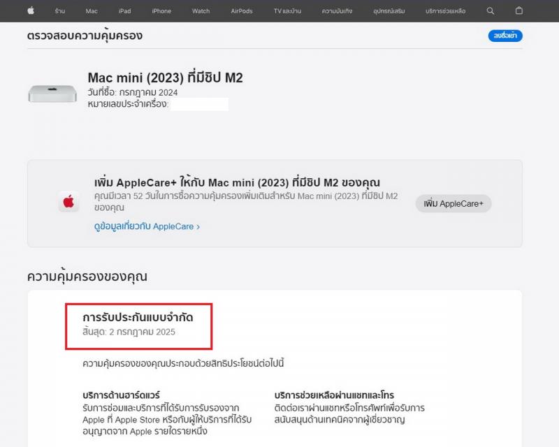 – Warranty : ประกันศูนย์ Apple ถึงวันที่ 02-07-2025 ครับ