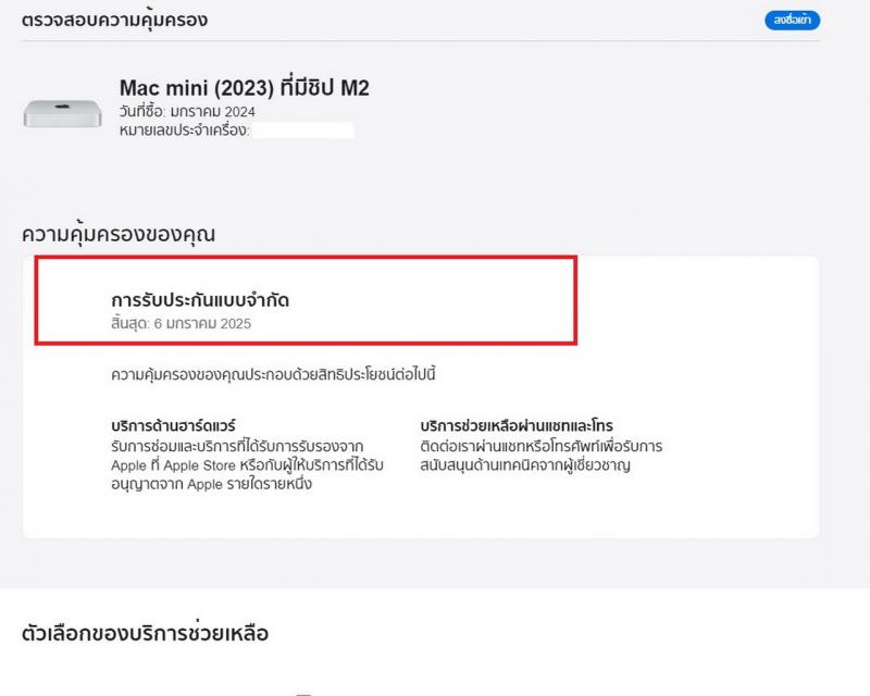 – Warranty : ประกันศูนย์ Apple ถึงวันที่ 06-01-2025