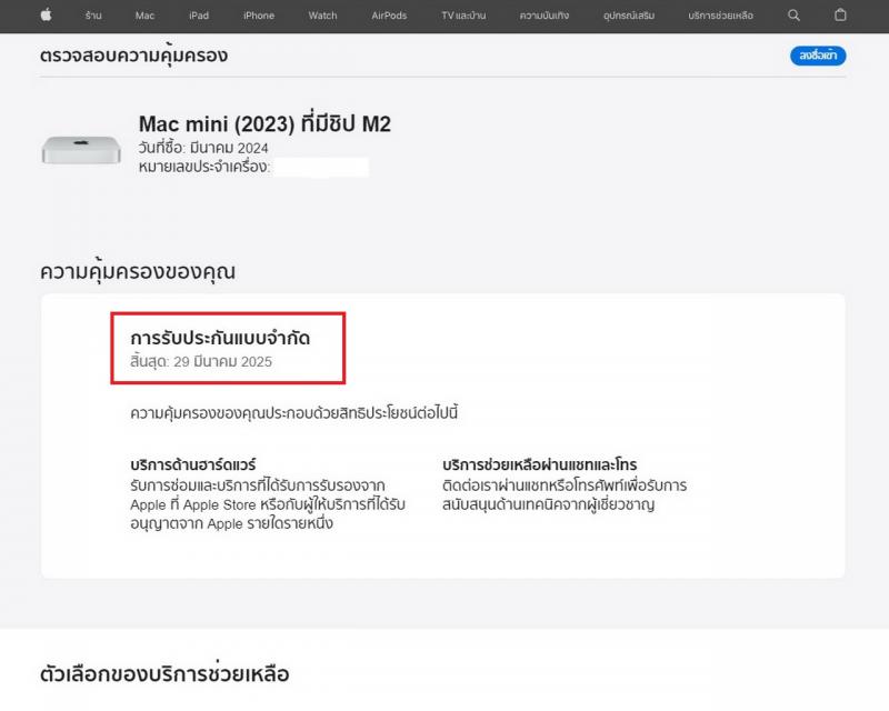 – Warranty : ประกันศูนย์ Apple ถึงวันที่ 29-03-2025 ครับ