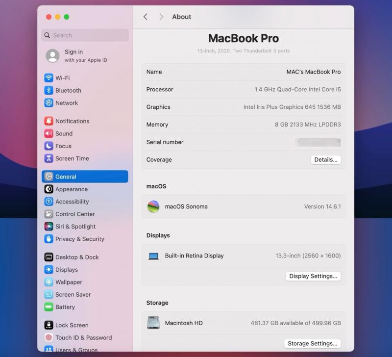 ▪️ macOS : Sonoma 14.6.1