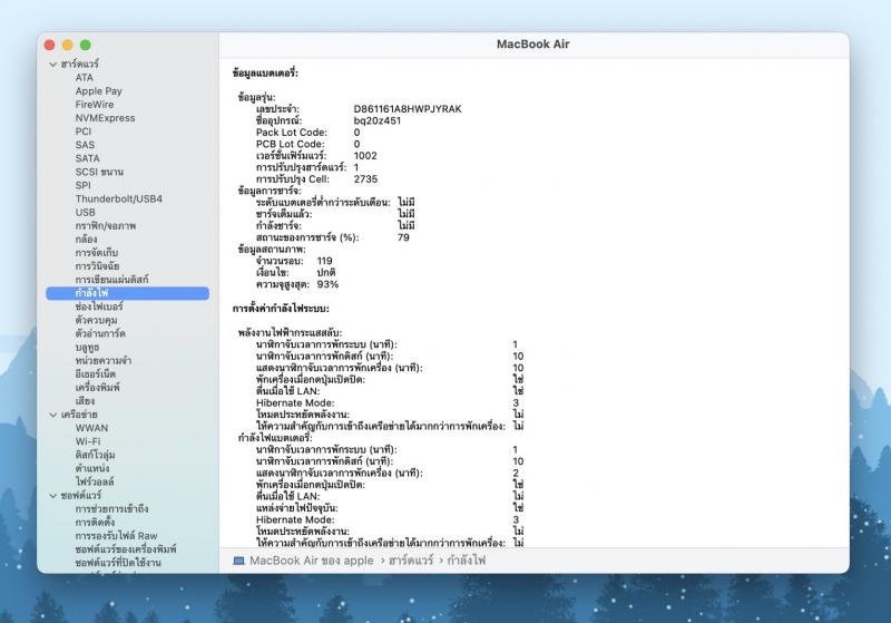 ▪️ Battery : Cycle Count 119/Normal,Maximum Capacity 93%