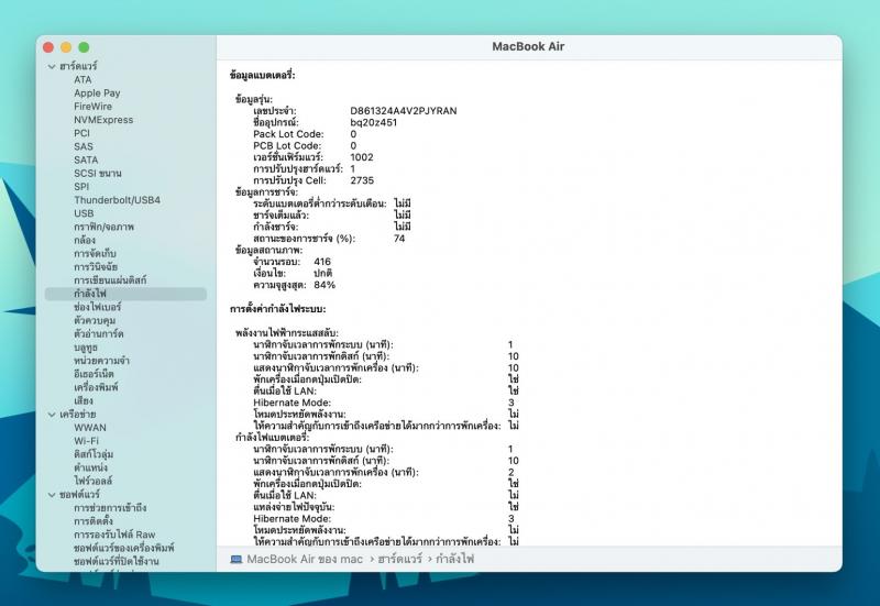 ▪️ Battery : Cycle Count 416/Normal,Maximum Capacity 84%