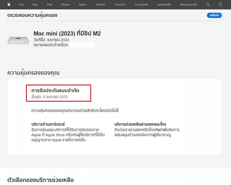 – Warranty : ประกันศูนย์ Apple ถึงวันที่ 08-04-2025 ครับ