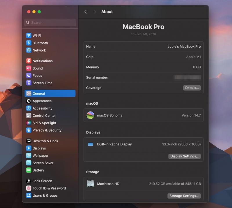 MacBook Pro 13-inch M1 Ram8gb SSD256gb SpaceGray