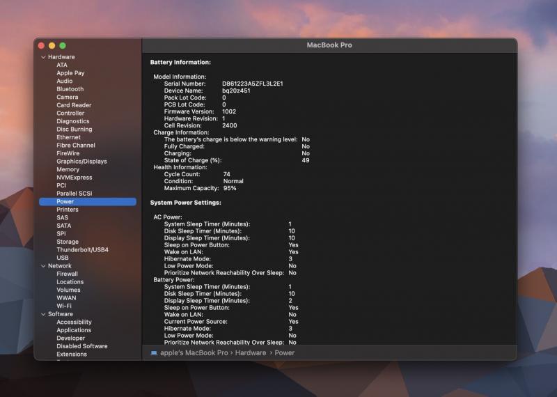 ▪️ Battery : Cycle Count 74Normal, Maximum Capacity 95%