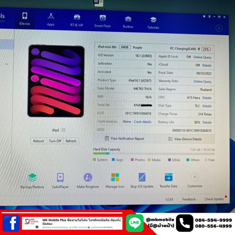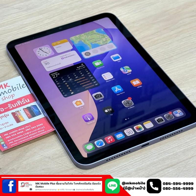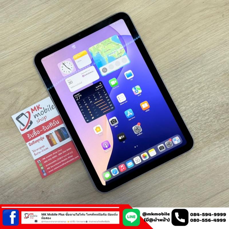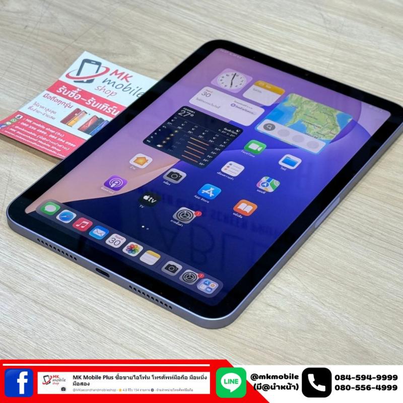 >>> Ipad Mini 6 64GB Wifi สีม่วง ศูนย์ไทย สภาพนางฟ้า แบต 88% มีเครื่องกับชุดชารจ เพียง 12590