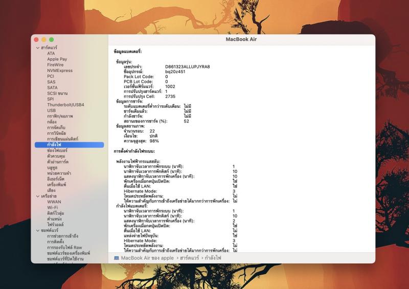 ▪️ Battery : Cycle Count 22/Normal,Maximum Capacity 98%