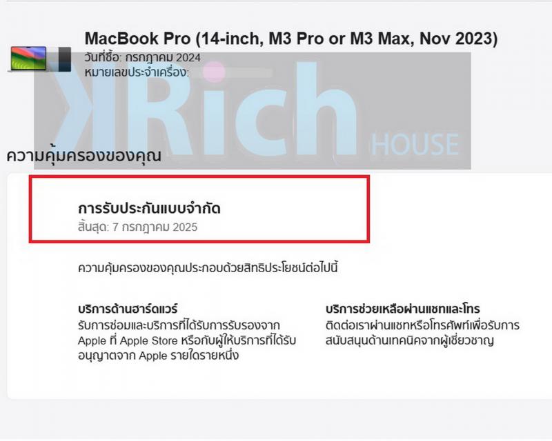 – Warranty : ประกันศูนย์ถึงวันที่ 07-07-2025