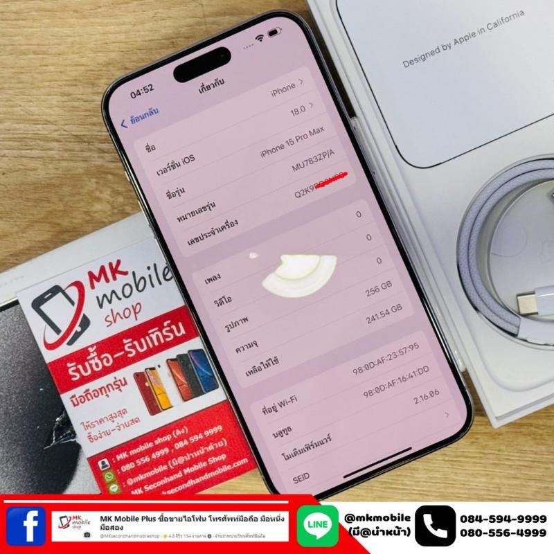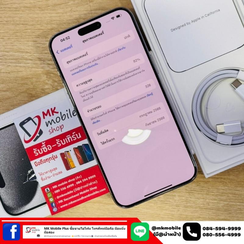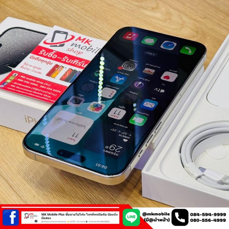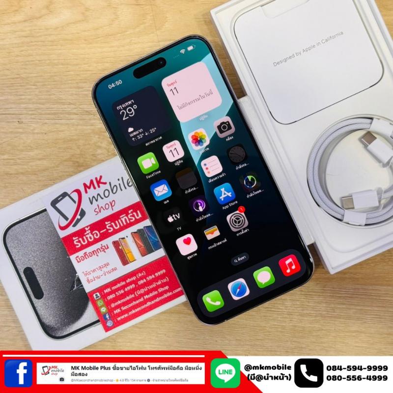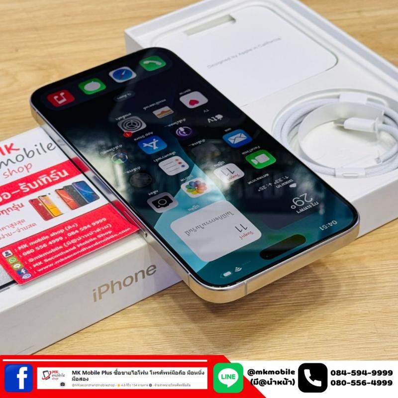 Iphone 15 Pro Max 256 GB สีขาว ศูนย์ไทย สภาพงาม เบต้าแบต 82% อุปกรณ์แท้ครบกล่อง เพียง 31990