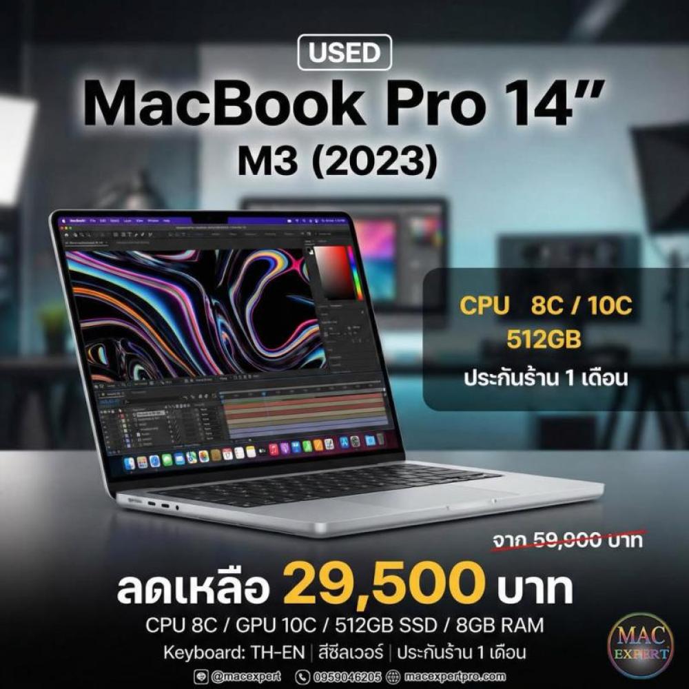 SALE MacBook Pro 14"2023 M3 2023 Keyboard THAI-English สินค้าเคลียเล้นมือสองตกรุ่น สภาพเหมือนมือหนึ่ง (29500-)
