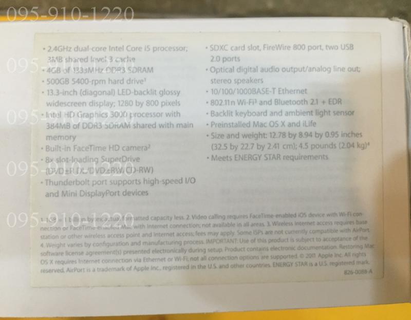 ขาย macbook pro 13" 2.4 i5 Ram4GB HDD500 ขาย19500