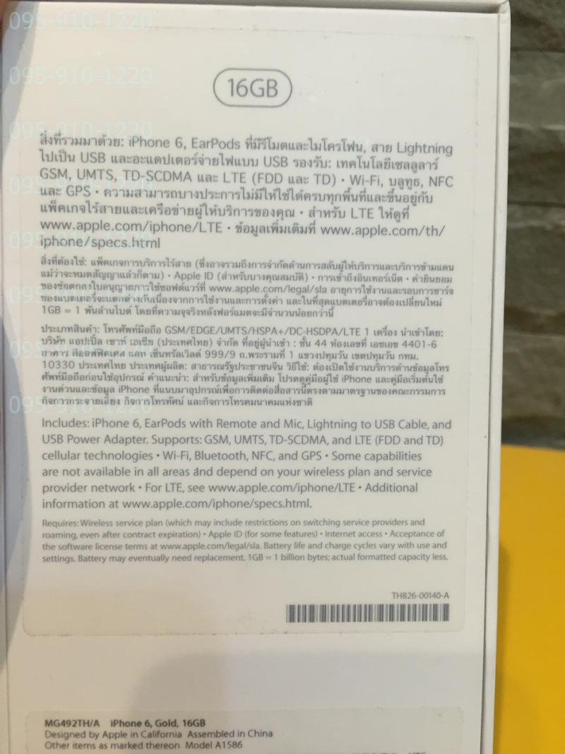 ขาย iphone 6 16GB ศูนย์ไทย สีทอง ครบยกกล่อง ไร้รอย ขาย14900