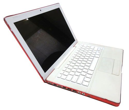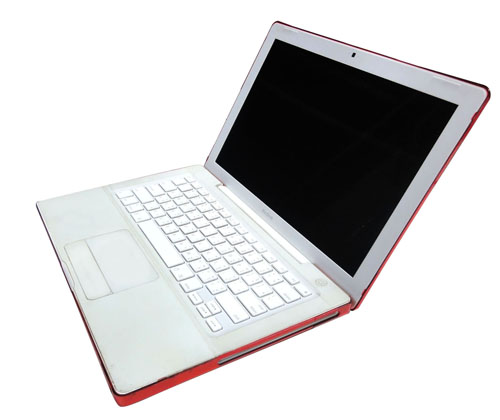 Macbook White จอ 13.3 นิ้ว Core2DUO 2.0GHZ ใช้งานได้ตามปกติ ภายนอก แถมเคสสีแดงและที่รองฐานระบายความร้อน