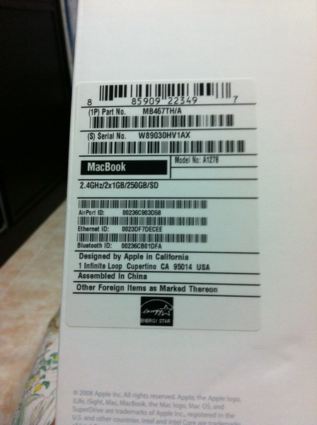สินค้า : Macbook Aluminium 13.3 (Unibody)