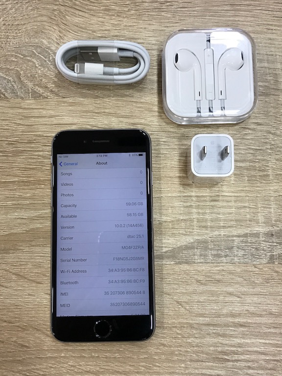 อุปกรณ์ (device):IPhone 6 64g สีเทาสายชาร์ท หัวชาร์ท หูฟัง